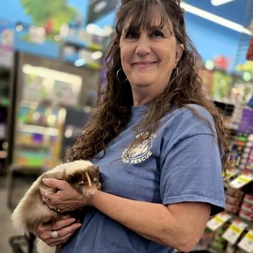 Katie aka "Snow White" is our Vice President. She has been extremely instrumental in helping with every aspect of the rescue over the years, she has a true knack with the critters. She helped raise several of our non-releasable opossums & raccoons. She is greatly valued & appreciated!